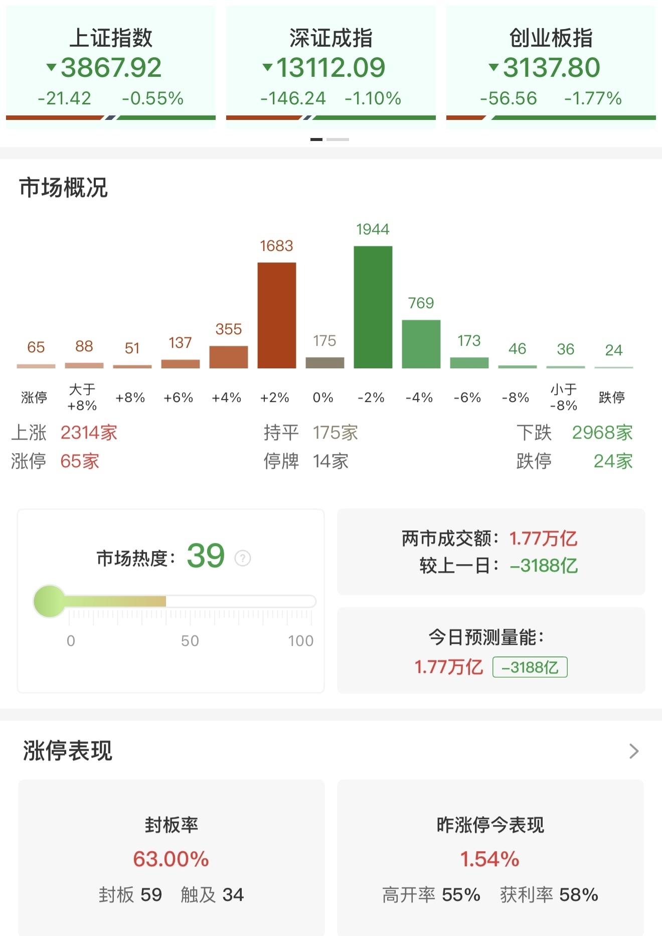 财联社12月15日电 市场震荡调整,沪指盘中翻红后再度回落,创业板指低开低走。沪深两市成交额1.77万亿,较上一个交易日缩量3188亿。盘面上正版炒股软件,市场热点快速轮动,全市场超2900只个股下跌。从板块来看,大消费方向大涨,其中白酒概念开盘活跃,中锐股份2连板;乳业概念快速拉升,皇氏集团、阳光乳业涨停;零售表现强势,百大集团、广百股份涨停。